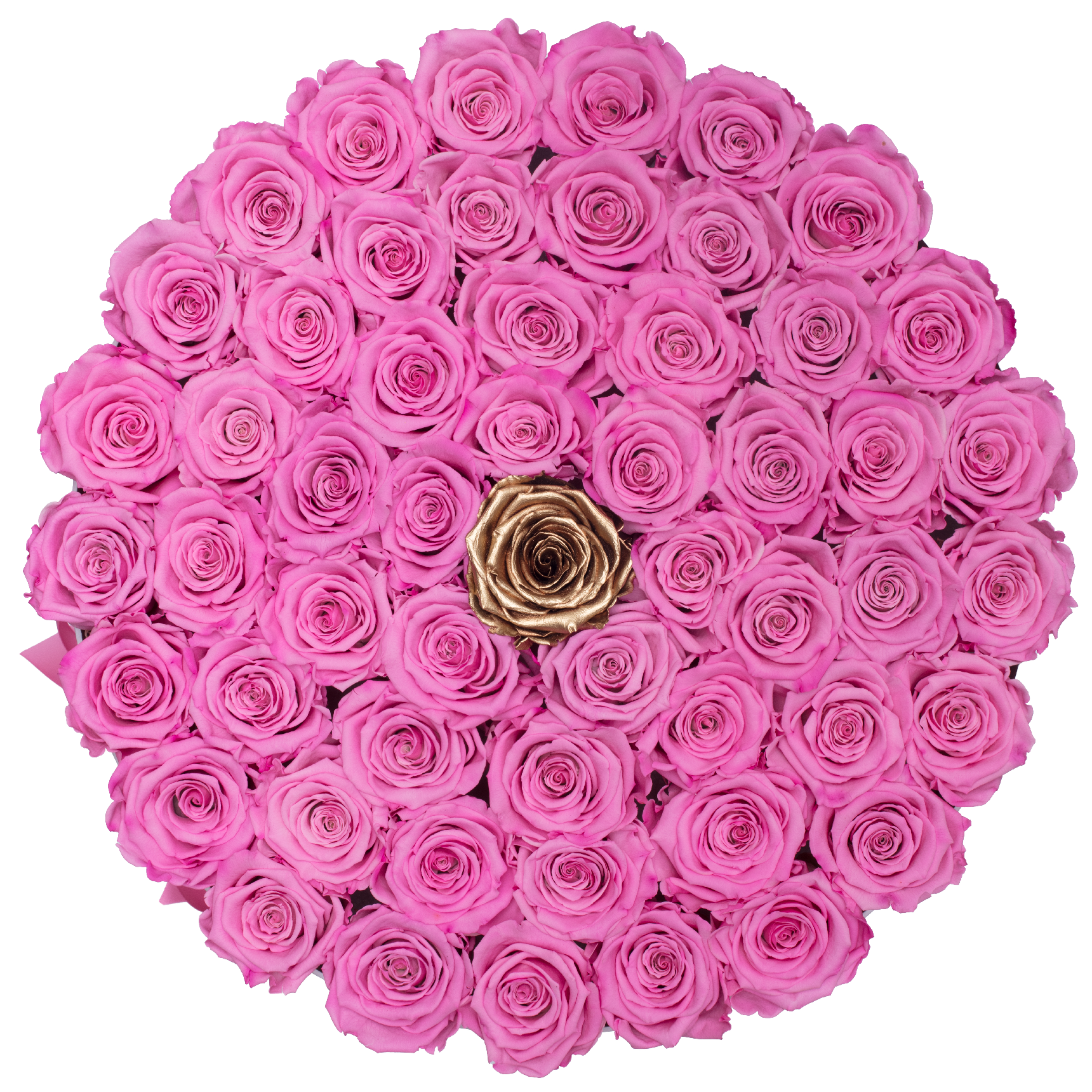 Pink & Gold Preserved Roses | Large Round White Huggy Rose Box