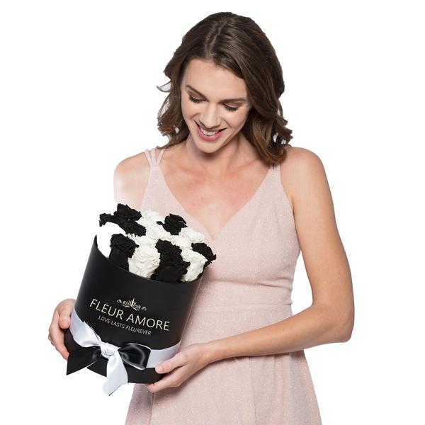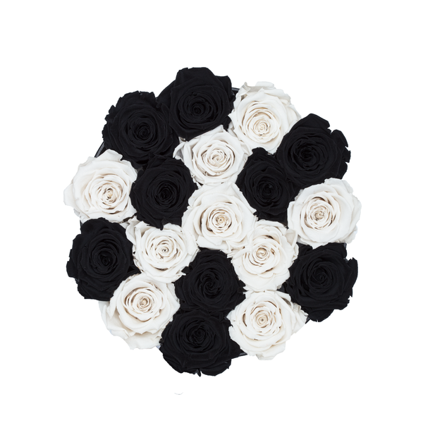 Black & White Preserved Roses | Small Round Black Huggy Rose Box