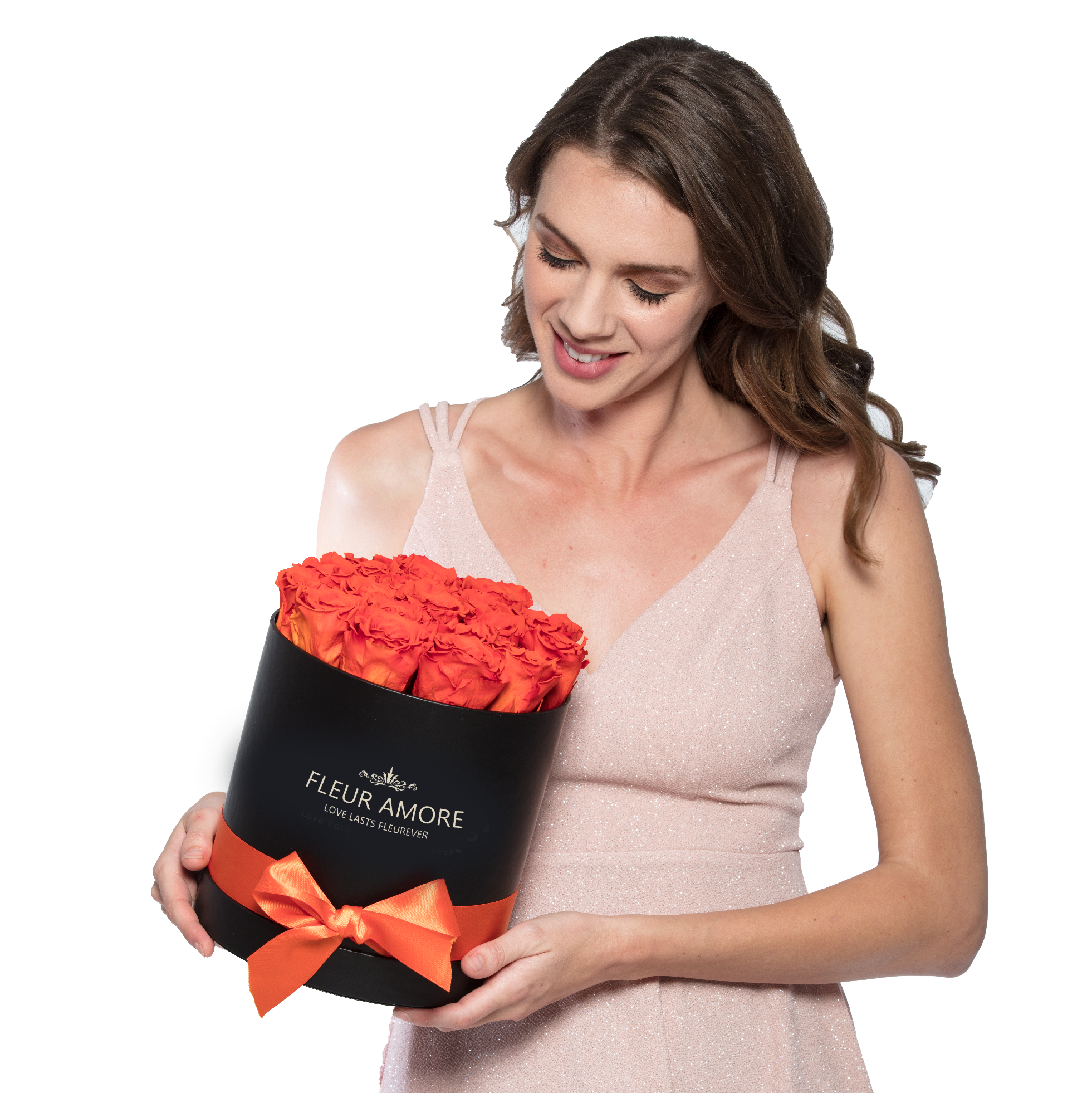 Orange Preserved Roses | Small Round Black Huggy Rose Box