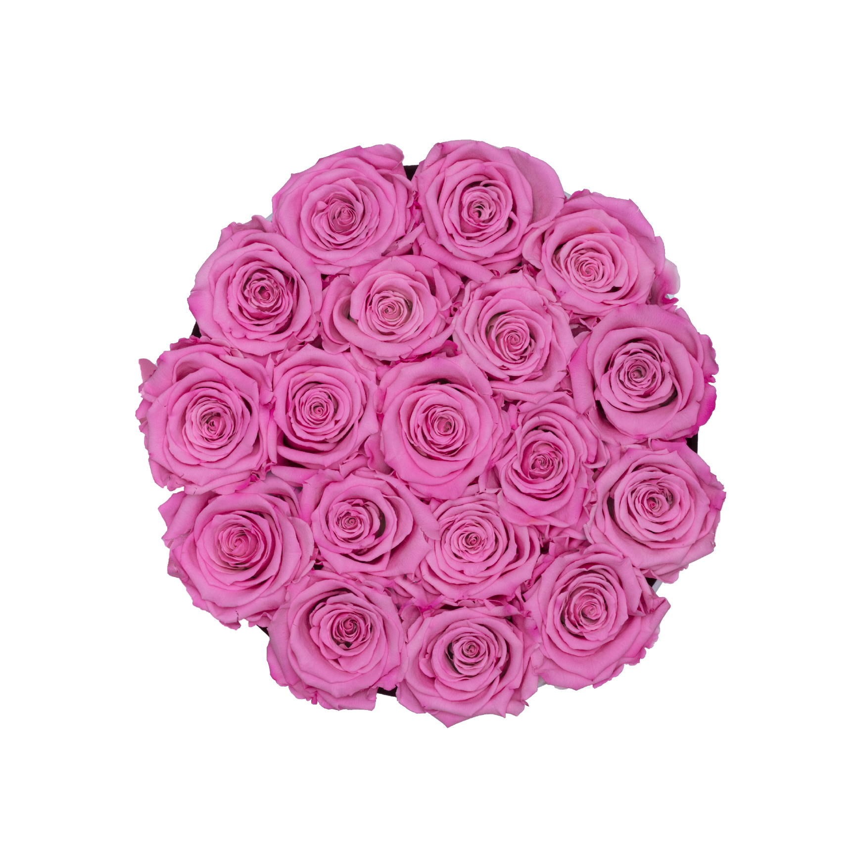 Everlasting Rose® color: Pink Number of Everlasting Rose®: 18 ~ 20 roses Rose box diameter: 8 in Rose box height: 8 in Rose box color: White Everlasting Rose® diameter: 2 in