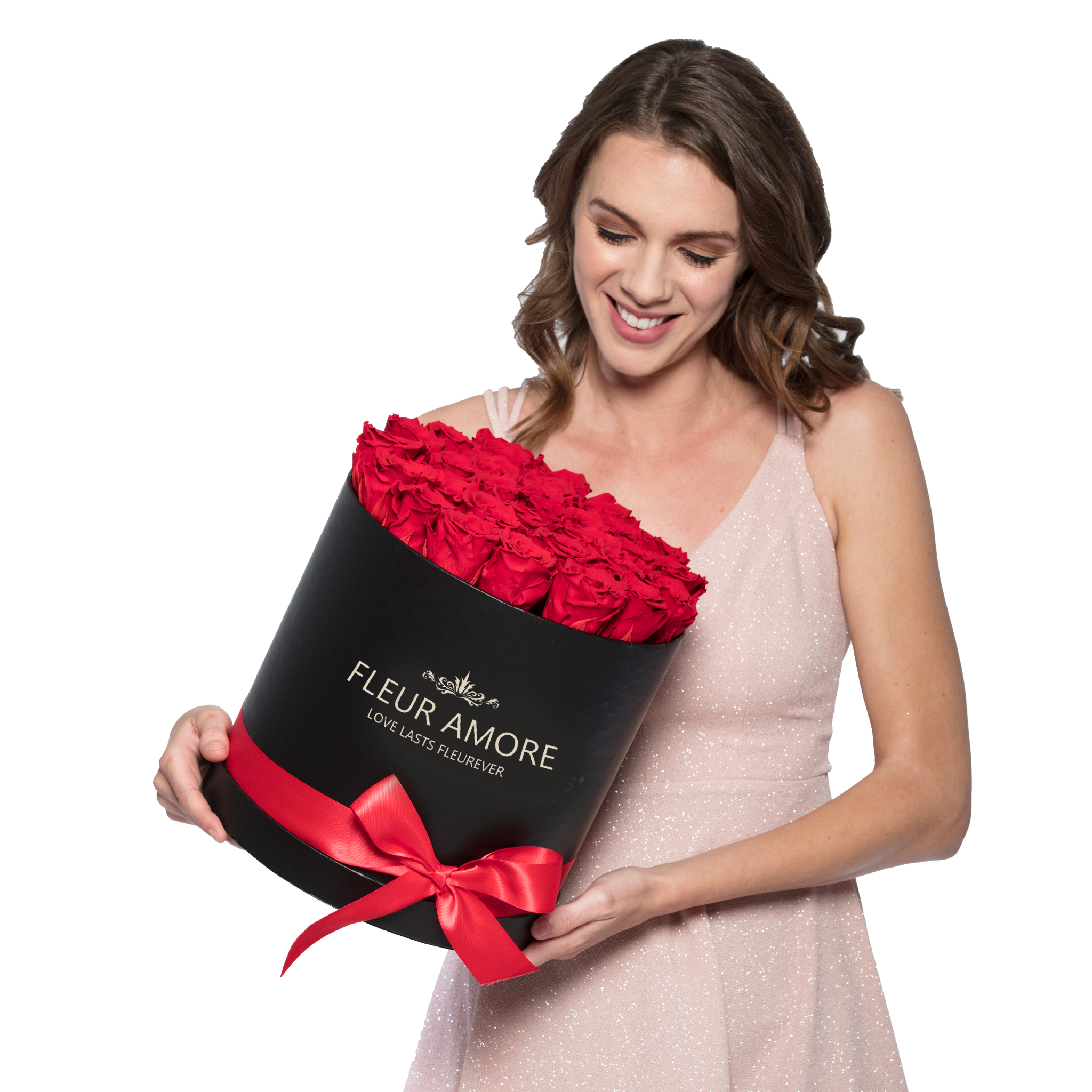 Everlasting Rose® color: Red Number of Everlasting Rose®: 18 ~ 20 roses Rose box diameter: 8 in Rose box height: 8 in Rose box color: Black Everlasting Rose® diameter: 2 in