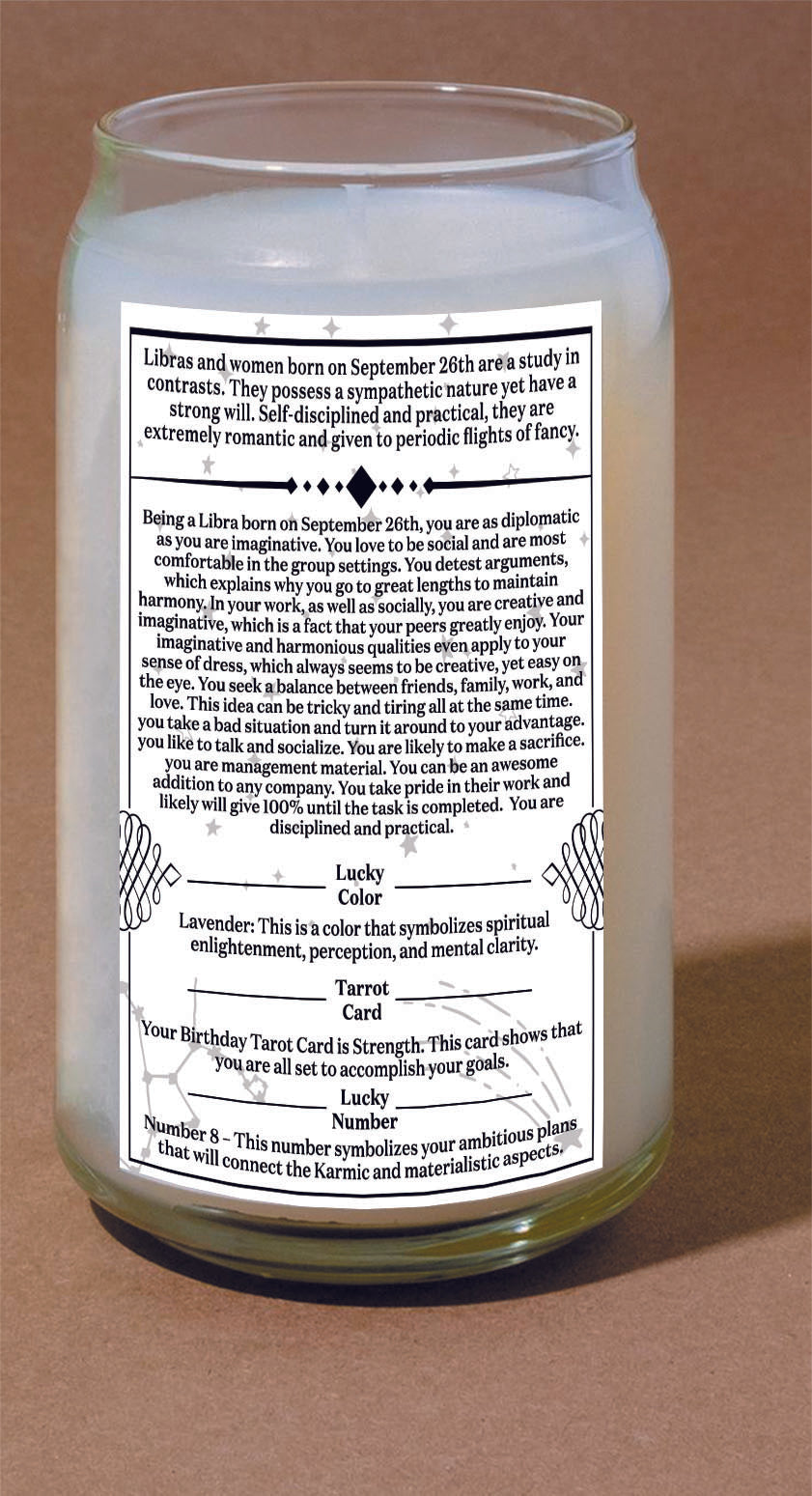 Being a Libra born on September 26th, you are as diplomatic as you are imaginative. You love to be social and are most comfortable in the group settings. You detest arguments, which explains why you go to great lengths to maintain harmony. In your work, as well as socially, you are creative and imaginative, which is a fact that your peers greatly enjoy. Your imaginative and harmonious qualities even apply to your sense of dress, which always seems to be creative, yet easy on the eye. You seek a balance between friends, family, work, and love. This idea can be tricky and tiring all at the same time. you take a bad situation and turn it around to your advantage. you like to talk and socialize. You are likely to make a sacrifice. you are management material. You can be an awesome addition to any company. You take pride in their work and likely will give 100% until the task is completed. You are disciplined and practical. These people are a study in contrasts. They possess a sympathetic nature yet have a strong will. Self-disciplined and practical, they are extremely romantic and given to periodic flights of fancy. They appear reserved, yet they have a wonderful sense of humor.