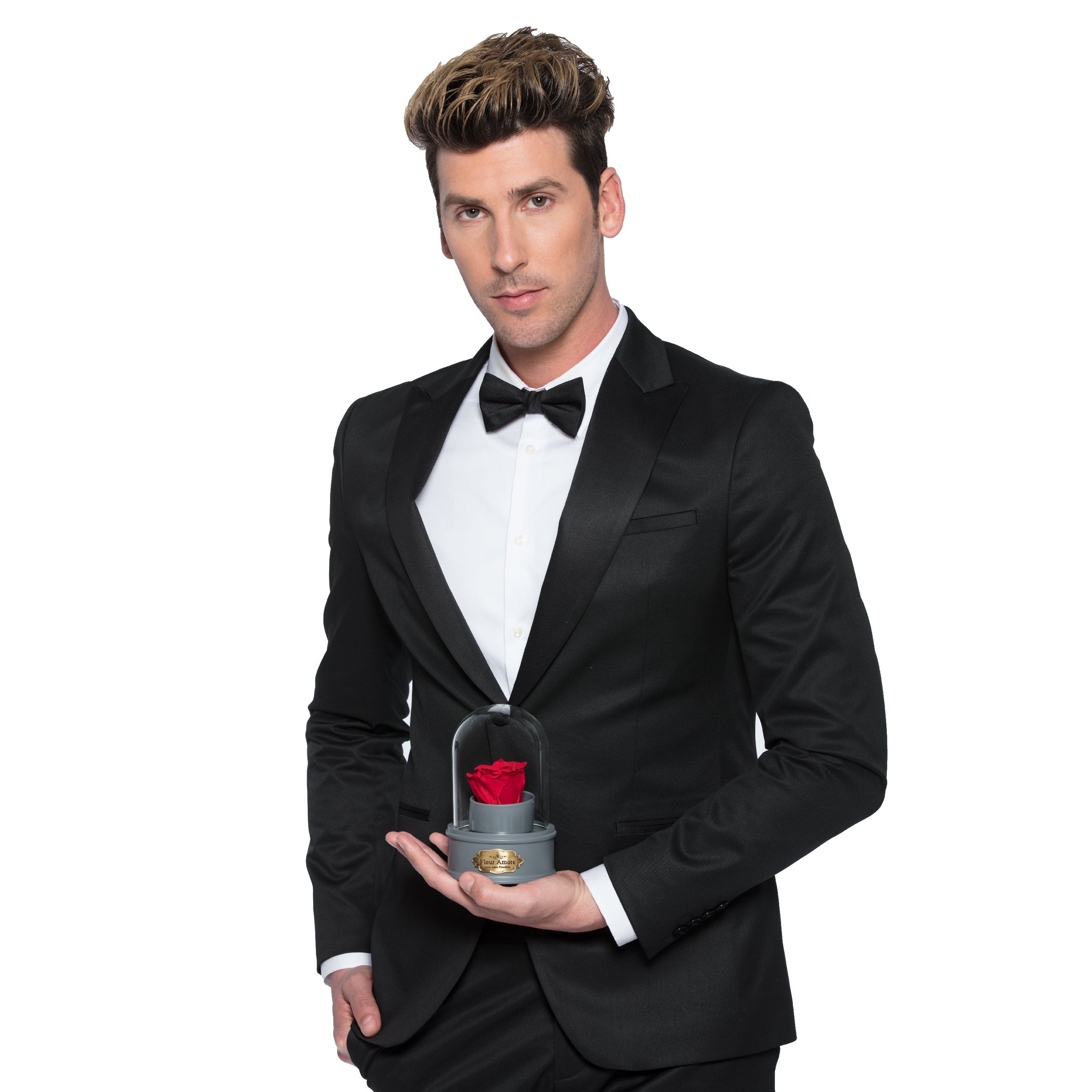 Everlasting Rose® color: Yellow Rose globe diameter: 3.35 in Rose globe height: 6.3 in Rose globe color: Silver Music soundtrack: Castle in the sky Everlasting Rose® diameter: 2.6 in